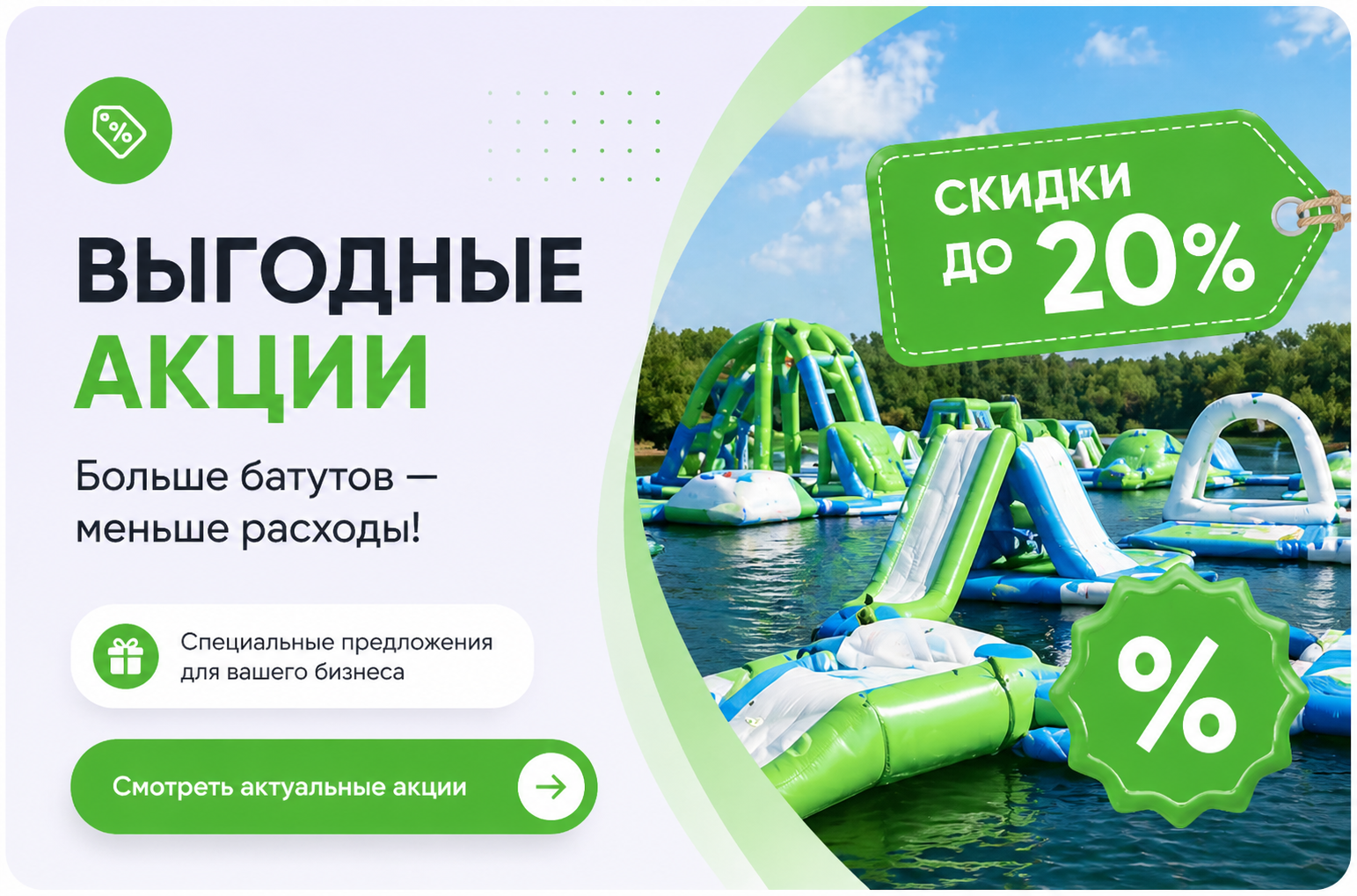 Многообразие форматов: Мы предлагаем широкий выбор аттракционов — от батутов и горок до аквапарков, что позволяет вам адаптировать предложения к различным предпочтениям вашей аудитории и создать уникальное пространство развлечений.