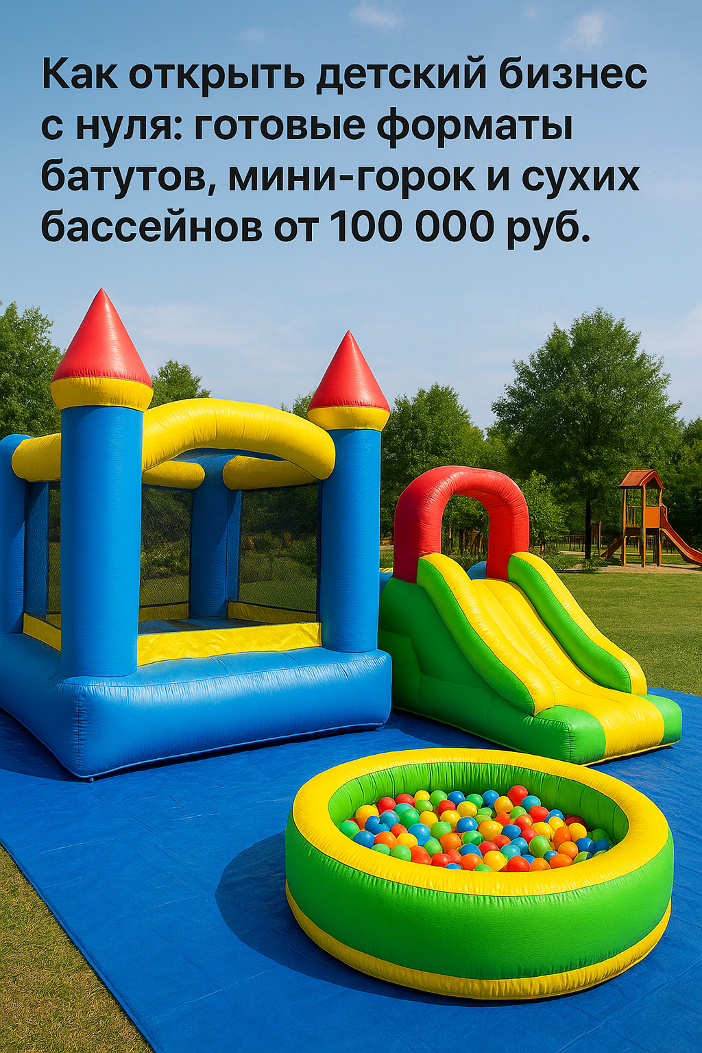 Сегодня рынок детских развлечений растёт даже в непростые времена. Родители всегда готовы радовать детей, а значит — инвестиции в детский досуг стабильно окупаются. Если вы ищете направление, которое можно начать с минимальными вложениями, обратите внимание на готовые форматы — батуты, мини-горки и сухие бассейны. Это готовые решения для старта бизнеса с бюджетом от 100 000 рублей и быстрым выходом на прибыль.