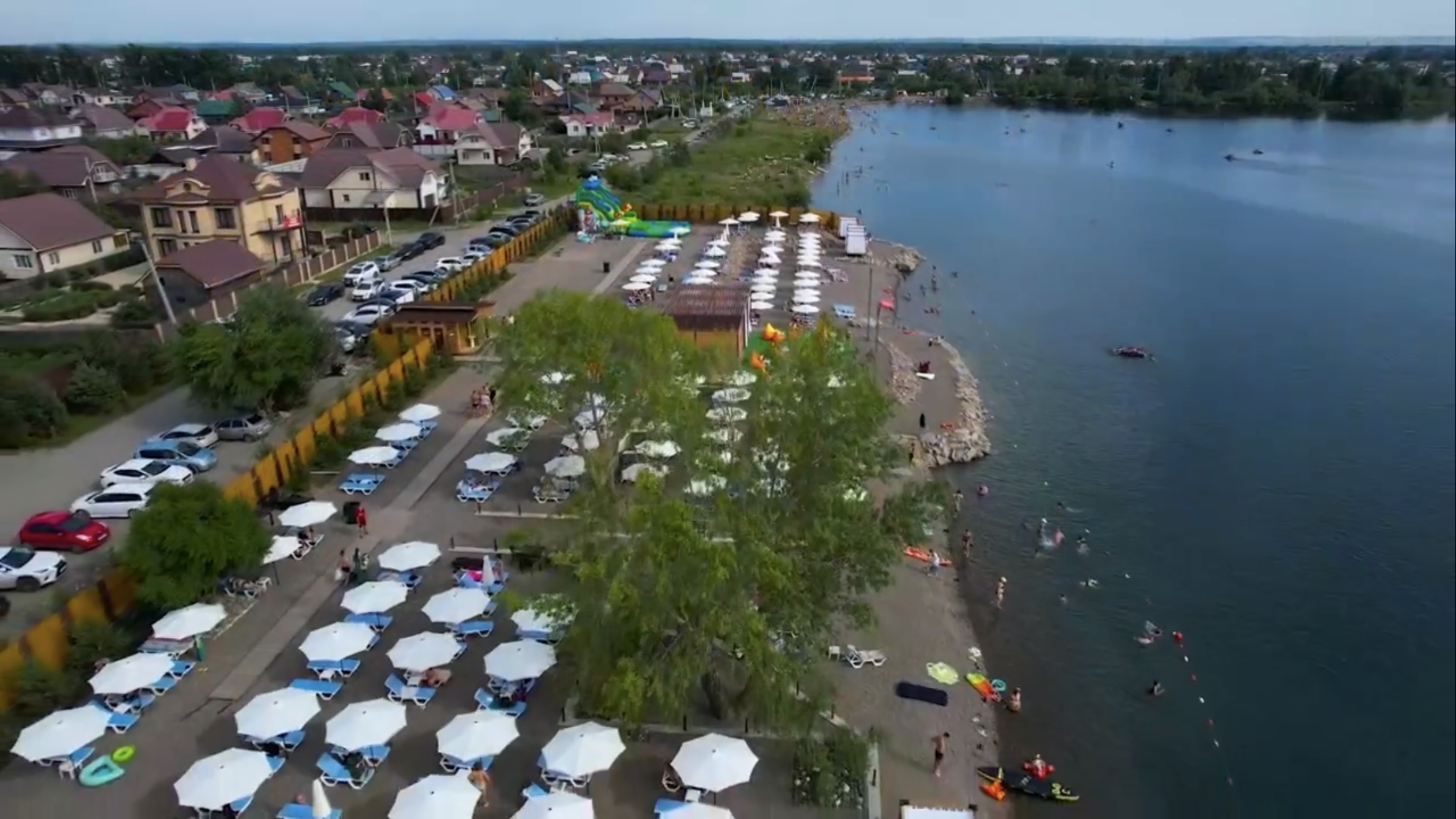 - Формат: благоустроенный городской пляж с зоной отдыха, шезлонгами, зонтами, раздевалками